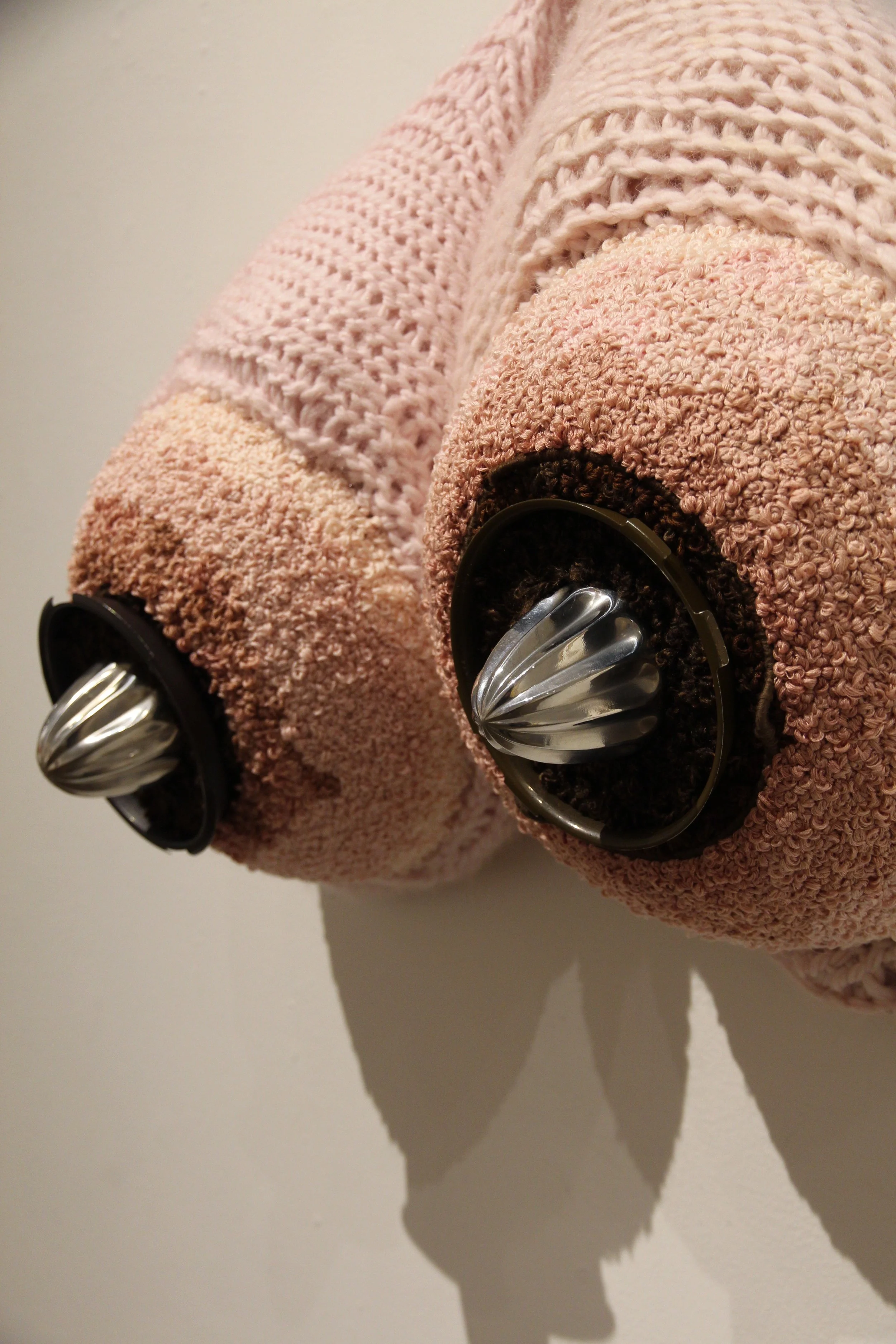 “Strained”, 2021, Kitchen strainer, kitchen juicer, embroidery thread, yarn